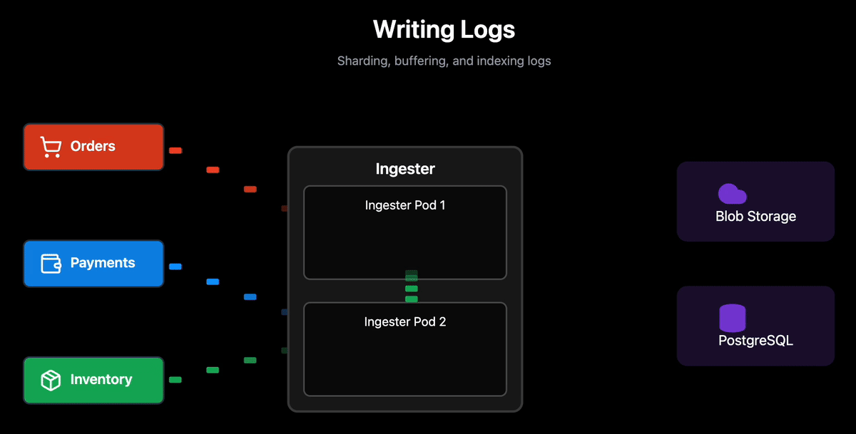 The ingestion pipeline balances two competing goals: minimizing storage costs while enabling fast queries. How we partition, batch, and index logs during writes directly determines query performance. The implication is that there’s no separating storage decisions from query performance optimization.